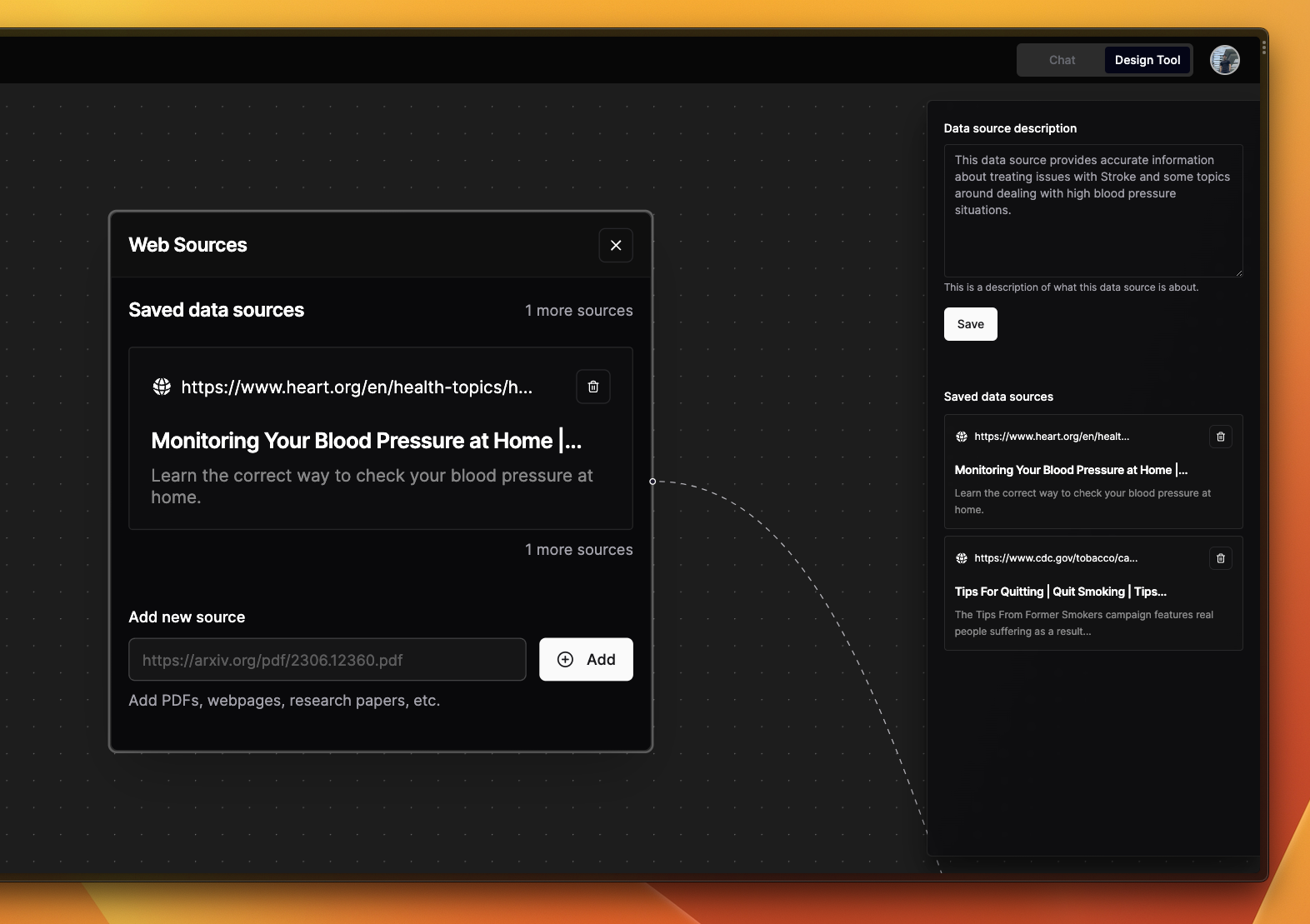 - Side panel shows all the sources in detail along with module specific description.